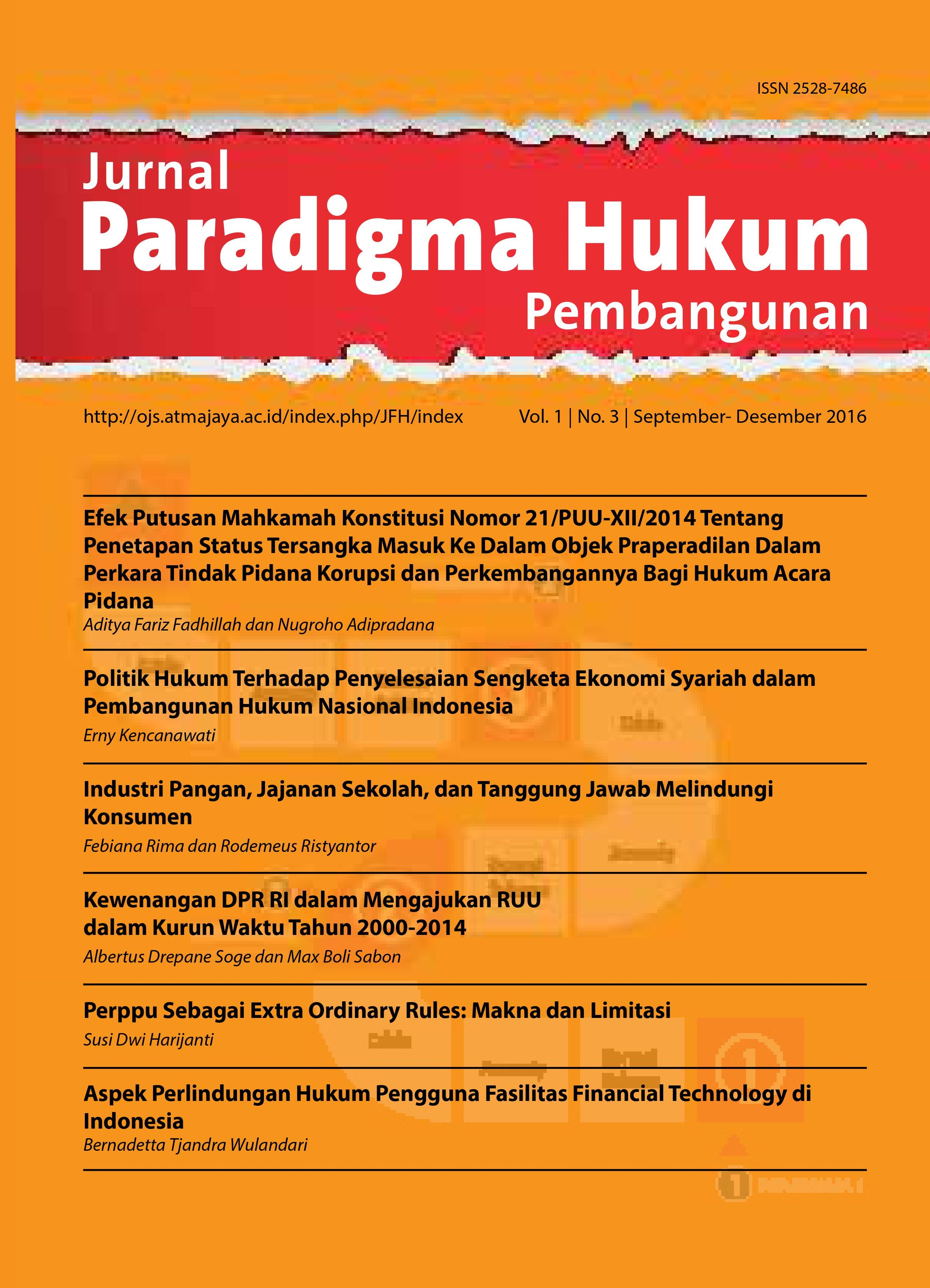 Paradigma Hukum Pembangunan is an open-access scholarly journal published by the Faculty of Law, Atma Jaya Catholic University of Indonesia, focusing on the fields of Economic Law, International Trade Law, and Commercial Law. First published in 2015, the journal is committed to serving as an international academic platform to foster cross-border research in economic and trade law.